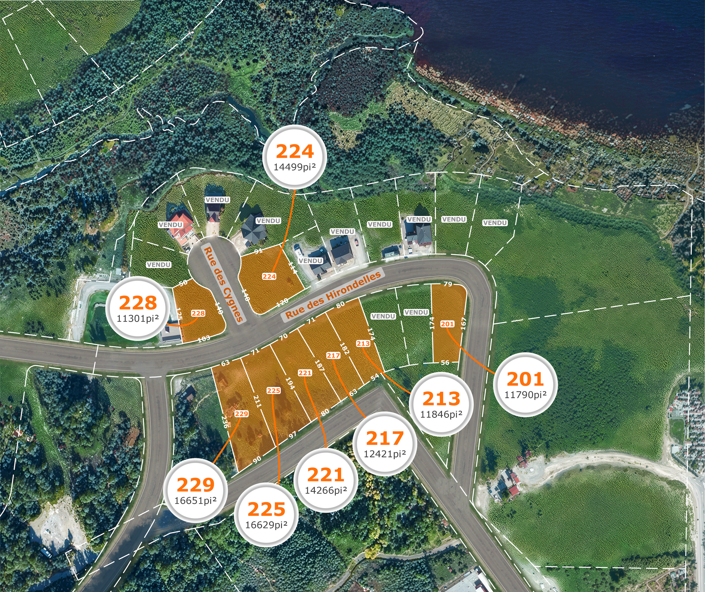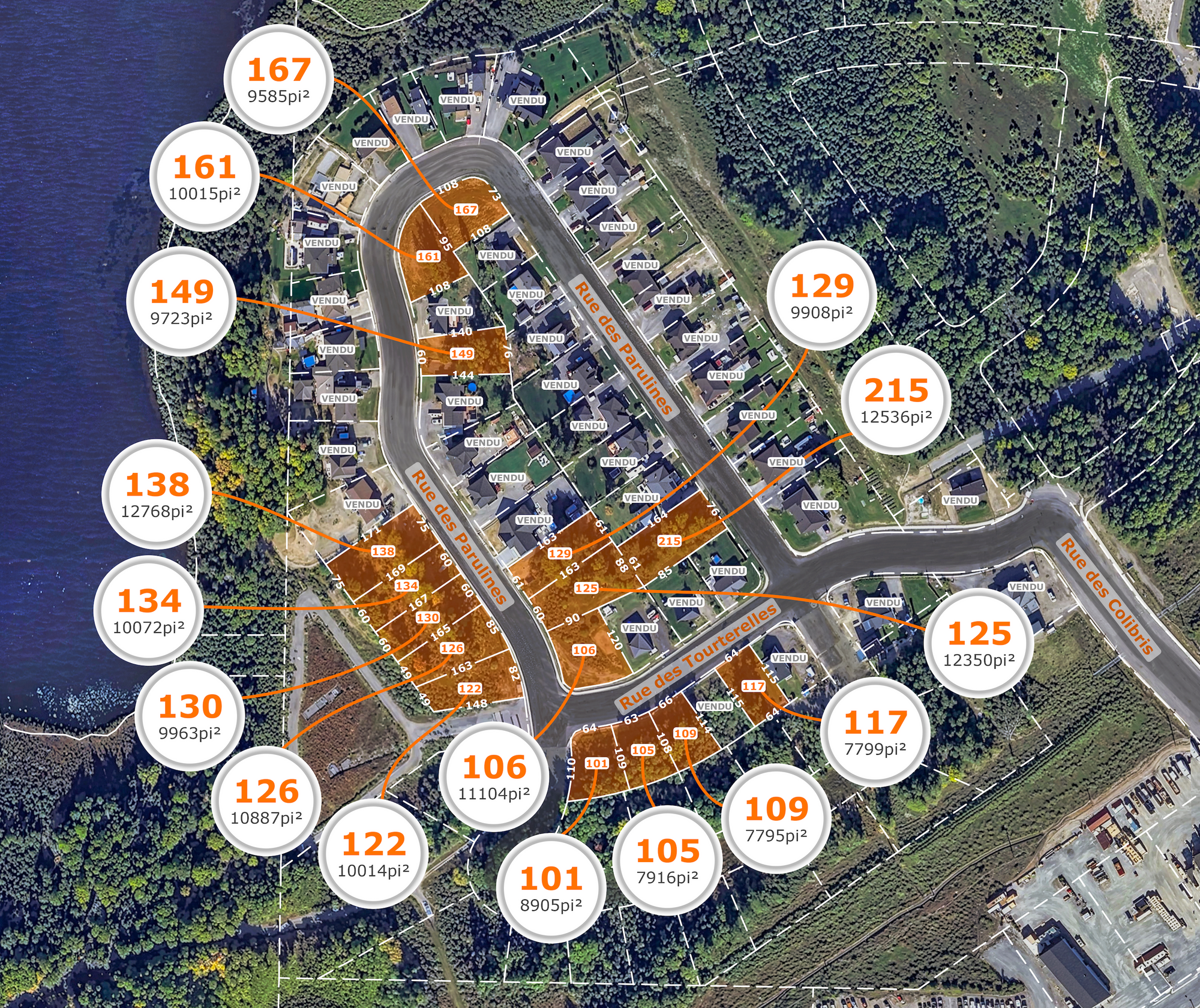 Situés du côté du Lac Blouin, nous vous offrons d'immenses terrains de ville sur le bord ou non du lac Blouin avec tous les services d'égout et d'aqueduc